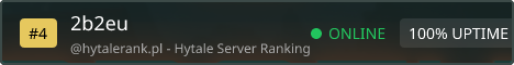 Welcome to 2B2EU - Europe's First Hytale Anarchy Server The oldest anarchy server in European Hytale history. Launched on day one. What makes us different: • No rules - complete freedom • No resets - your builds last forever • No admin interference - pure survival • 24/7 uptime - always online • Low ping - hosted in Germany Server Info: • Address: play.2b2eu.org • Discord: discord.gg/Bc9brRGU • Website: 2b2eu.org Build empires. Raid bases. Make alliances or enemies. This is your world - do whatever you want with it. No rules. No mercy. Welcome to chaos.
