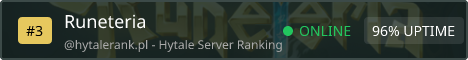 Step into a living, player-driven world where your story and actions actually matter! Our Runeteria RPG SMP blends immersive roleplay, progression systems, handcrafted dungeon rifts, thriving economy, guilds & towns and much more, into a fully fledged RPG SMP. Whether you're a city builder, dungeon delver or a master crafter, there's definitely a path with your name on it!