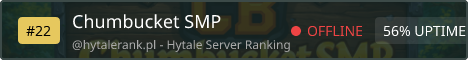 Welcome to Chumbucket SMP a new survival Hytale server! Team up with friends build a base survive! Join our discord! https://discord.gg/4ekaVDZjDG