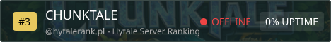 🌍 ChunkTale | Un mundo por descubrir en Hytale ⚔️ Bienvenido a ChunkTale, un servidor donde cada chunk cuenta una historia y cada aventura es única. Sumérgete en un mundo lleno de desafíos, secretos y diversión sin límites. 🪓 Survival PvP Enfréntate a otros jugadores en un entorno survival donde la estrategia, la habilidad y la supervivencia lo son todo. Forma alianzas… o rómpelas. 🎮 Minijuegos Disfruta de una gran variedad de minijuegos diseñados para competir, divertirte y demostrar quién es el mejor. Siempre habrá algo nuevo que jugar. 🗺️ Exploración y descubrimiento Desde zonas ocultas hasta eventos especiales, ChunkTale está lleno de misterios, recompensas y contenido por descubrir. El mundo evoluciona contigo. ✨ Y mucho más…