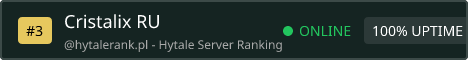 Welcome to Cristalix RU - Classic Survival Done Right Looking for an authentic Hytale survival experience without the chaos? Join our community-focused server where you can build, explore, and thrive in a protected environment! What We Offer: • Land Claims - Secure your builds and resources with our easy-to-use protection system. No more griefing or theft! • Home System - Set multiple home points and teleport back to your bases instantly • Pure Survival Gameplay - No pay-to-win, no excessive plugins - just classic Hytale survival as it was meant to be played • Community-Driven - Build alone or team up with other players in a friendly, respectful environment Whether you're a solo builder, a group looking for adventure, or someone who just wants to enjoy Hytale without worry, our server provides the perfect balance of protection and freedom. Start your journey today!