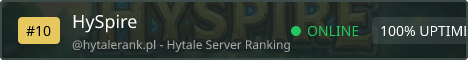 Willkommen auf Hyspire. Wir bieten ein erweitertes RPG-Erlebnis durch eine kuratierte Auswahl an Mods und Features. 🛡️ Server Features: • Claims: Sichere dein Gebiet einfach mit /sc (/sc --help)• Angepasste Item-Stacks (größere Mengen stackbar) ⚙️ Mod-Liste: • Yung's HyDungeons (Neue Dungeon-Strukturen) • NoCube Mods (Bakehouse, Culinary, Cultivation, Neon Blocks, Orchard, Resource Bags, Simple Bags, Tavern, Undead Warriors, ) • Macaw's Mods (Doors, Paintings) • Painting Mods (Mehr Dekoration) • EyeSpy • ThePickaxePlaceTorches (Place Torches with a Pickaxe) • Violet's Mods (Furnishings, music players, Wardrobe) • Ymmersive Mods (Melodies, Statues) Bereit für dein Abenteuer? IP: play.hyspire.eu