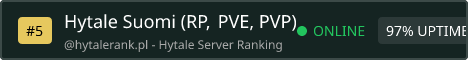 SUOMI SERVU! Nyt kaikki mukaan!... Enimmäkseen RP, PVE ja myöhemmin peeveepee kontenttia myös ja kaikkea mitä peli tuoo tullessaan. Peli vasta alussa joten tehdään tästä servusta uniikki ja massiivinen. (seikkaulua, tiimityötä, ajanvietettä, hienoja rakkenuksia vaihtokauppaa toisten pelaajien kanssa ja suomi chat sekä muuta hauskaa joten liity suomen parhaaseen Hytale servuun ja nauti! Yhteistyöllä rakennettaan isoja rakennuksia ja omia tukikohtia voi tehdä ystävien kanssa myös. Kunnioitetaan toisten omaisuutta ja pidetään hauskaa
