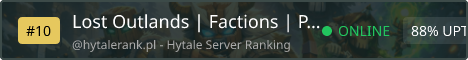 Welcome to Lost Outlands, a fresh Hytale server focused on Survival and Factions. Server IP: play.lostoutlands.com:28000 Join our Discord: https://discord.gg/E34Qk8b8 Experience balanced gameplay, strategic faction wars, and community-driven evolution. Early players shape the server—build, conquer, or survive. We're seeking mods, builders, and devs to grow together. Join early and leave your mark as an Outlander.