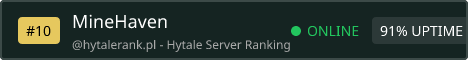 MineHaven – Your Adventure, Your World! Welcome to MineHaven, the ultimate Hytale experience where your adventure begins! Explore, build, and survive in a world full of endless possibilities. Features: Claim Your Land: Own your personal plots and protect your creations. Level Up: Gain experience, unlock perks, and grow stronger as you play. Adventure & Explore: Discover hidden treasures, dungeons, and epic landscapes. Community & Fun: Join a friendly community, trade, and collaborate with other players. Create, explore, and make MineHaven your home – the world is yours!