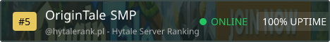 Welcome to OriginTale SMP - a cozy fantasy survival multiplayer server where community, progression, and competition come together. Enjoy classic SMP gameplay enhanced with KOTH events, player shops, warps, homes, party systems, combat logging protection, vote rewards, and detailed stat tracking. Whether you’re building peacefully or fighting for control, every player shapes the world’s story. Join our Hytale server: play.origintale.org Join our Discord: https://discord.gg/Zcr35hJqsy