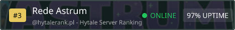 Venha jogar Hytale da forma que ele deve ser jogado! O Astrum oferece um servidor Vanilla estável para quem quer focar em sobrevivência, construção e exploração cooperativa.