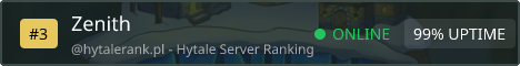 Welcome to Zenith's Hytale server! A small SMP-like server testing out the game! Land claiming, web map, instruments, homes and more! No griefing / pvp / stealing We are brand new so open to suggestions!