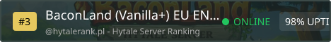 BaconLand | Vanilla+ 🥓 A community-driven Hytale server built for players. We keep the classic feel alive with a curated selection of vanilla-like mods and essential quality-of-life features. Secure: Protect your base with SimpleClaim. Connect: Easy travel with /tpa, /sethome, and /spawn. Evolve: A progressive experience that grows based on community feedback. Join the journey and help us build!