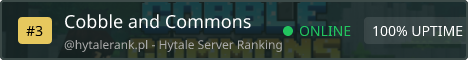 A New Era of Adventure. The Same Values. The Cobble and Commons philosophy has been simple: the players come first. As we transition into the world of Orbis, our mission remains unchanged. We aren’t here to sell you ranks or loot boxes; we’re here to build a home. Why Join Cobble and Commons? True Zero-Monetization: No shops, no "pay-to-win," and no hidden fees. Every item and cosmetic is earned through gameplay and merit. Community-Led Evolution: Our roadmap is shaped by player feedback. If the community wants a feature, we build it together. Engaging Day 1 Gameplay: Whether you’re a master builder, a daring explorer, or a technical wizard, our server is optimized to provide a deep, immersive Hytale experience from the moment the gates open. Join a legacy built on integrity. Join Cobble and Commons. Currently our server remains completely vanilla with no extra mods or features, allowing you to explore Hytale in its current natural state. We will expand our server offerings over time as mods and features become available.