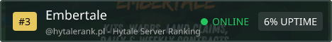 Embertale is a progression-focused Hytale survival server mixing SMP + RPG leveling + PvP with a player-driven economy. ✅ Economy & Trading ⚔️ PvP Combat 🏕️ SMP Survival 📈 RPG Leveling 🎒 Kits 🧭 Warps 📜 Contracts / Objectives Build, grind, fight, and climb the ranks — your story starts in Embertale.