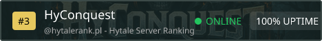 HyConquest é um servidor de Hytale focado em mecânicas de PVP Full Loot e Survival, criado para quem busca aventura, progresso e conquista. 🚧 Novos sistemas e mecânicas estão em desenvolvimento – entre agora e acompanhe a evolução do servidor!