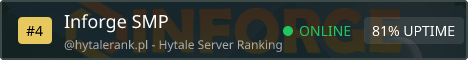 Inforge is a Hytale SMP server. We want to create a community oriented server where everyone can play. survive, build, mine, create, etc... Feel free to contact us for feedback or improvements :)