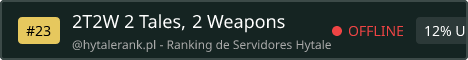2 Tales, 2 Weapons The Oldest Anarchy Server on Hytale. This server will remain vanilla. 2 Tales, 2 Weapons is an Anarchy server for Hytale, with no restrictions on players, regions, or anything else. Contact @Axodouble on Discord if you have any questions.