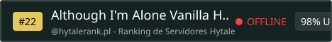 Although I'm Alone - Vanilla Hytale Server vanilla Hytale server. laid back community, no clout, We run Simple Claims so you can protect your builds, and CoreProtect for rollbacks when needed. A handful of quality of life tweaks. everyone gets 64 claim chunks. use wisely. Rules: No bullying No griefing PvP by consent only (managed through the Simple Claims party system) If you want a straightforward server without a ton of plugins or restrictions, this might be what you're looking for. Discord: https://discord.gg/pqfU2gcYm7