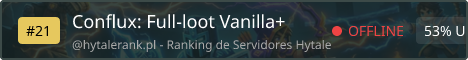 Welcome to Conflux, a full-loot Hytale server with custom leveling, competitive PvP, and a growing community. Server IP: play.confluxhytale.com:22600 Join our Discord: https://discord.gg/xxjYkcx9ws Experience meaningful progression through our custom leveling system, stake your claims, dominate the PvP arena, and build real wealth in our economy. Every fight carries weight. Early players shape the server—build, compete, or survive. We're actively developing and seeking players to grow with us. Join and grow with our community.