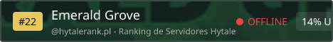 Welcome to Emerald Grove 🌿 A PvE-focused Hytale server where Guilds are the heart of the experience. Create a guild, recruit allies, and party up to explore a world packed with MMO-style RPG progression, custom skills, and a deeper challenge. With our fully customizable RPG skill progression system and RPG leveling stats/skills plugin, your character grows the way you want—build your role, strengthen your guild, and take on content that rewards teamwork. ⚔️ What to expect in Emerald Grove: 🛡️ Guilds (core feature) + community-driven group play 🎉 Party System for PvE runs and adventures 📈 RPG leveling + stats + skills with customization 🔥 Increased difficulty for a real challenge 🧟 Invasions and dangerous encounters 🧩 Tons of mods/plugins + QoL upgrades to enhance the experience 🌿 Guild up. Party up. Adventure together — claim your place in the Grove. Play Now: play.emeraldgrove.xyz