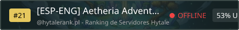 [ESP] ¿Buscas una verdadera aventura en el lanzamiento de Hytale? Aetheria Adventure es el hogar para los exploradores que buscan una experiencia de supervivencia pura pero mejorada. Mundo Inexplorado: Mapa recién generado para el lanzamiento de enero 2026. Bilingüe: Comunidad abierta para hablantes de español e inglés. Rendimiento Pro: Olvídate del lag. Invertimos en hardware de última generación para aguantar batallas masivas y exploración fluida. RPG & Economía: Sistema de comercio entre jugadores y misiones únicas. ¡Ven y ayuda a construir la capital de Aetheria desde el primer día! [ENG] Looking for a true adventure at Hytale's launch? Aetheria Adventure is the home for explorers seeking a pure yet enhanced survival experience. Unexplored World: Freshly generated map for the January 2026 launch. Bilingual: Open community for both Spanish and English speakers. Pro Performance: Forget about lag. We invest in top-tier hardware to handle massive battles and smooth exploration. RPG & Economy: Player-driven trade system and unique quests. Come and help us build the capital of Aetheria from day one!