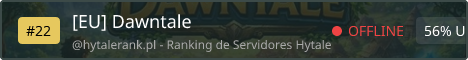 Welcome to Dawntale, a brand-new Hytale adventure server focused on calm exploration, immersive gameplay, and a friendly community. Our goal is to provide a relaxed environment for players who want to discover the world of Hytale without pressure in the default Vanilla World. We are a multilingual EU server and welcome players from all backgrounds. To enhance the gameplay experience, we use the following mods: - Advanced Item Info - EyeSpy - Homes Plus - Ore Harvester - Simple Claims - Thorium Chests - Tree Harvester - Violets Furnishings Join Dawntale and begin your journey in a world built for exploration, discovery, and adventure.