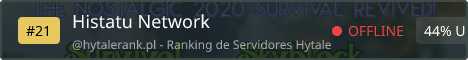 Histatu Network Is Back! play.histatu.net As a Minecraft powerhouse boasting over 100k+ unique players in 2020, we are now reopen for Hytale! We offer: Semi-Vanilla - The Classic (/sethome, /rtp) Survival - Standard Hytale! Server Economy - Get rich, or open your own shop! (/shop, /myshop) Custom Enchants - Nostalgic Minecraft Enchanting (Sharpness, Efficiency, etc.) MMORPG - Over 100+ Abilities to Level Battle Passes Oversized Item Stacking Skyblock Kit-PvP Miningames