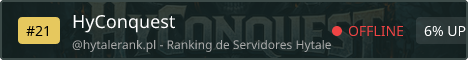 HyConquest é um servidor de Hytale focado em mecânicas de PVP Full Loot e Survival, criado para quem busca aventura, progresso e conquista. 🚧 Novos sistemas e mecânicas estão em desenvolvimento – entre agora e acompanhe a evolução do servidor!