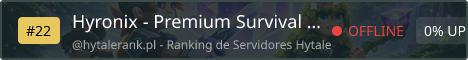 Hyronix is a high-quality Hytale Survival Server focused on innovation, depth, and immersion. We strive to provide a premium and unique experience, featuring advanced survival mechanics, custom content, and meaningful progression. Every system is built with care to ensure long-term enjoyment and a polished feel. Our ultimate goal is ambitious: to become the most advanced survival server in Hytale — and we’re building it step by step, the right way. Join Hyronix and be part of the future of survival.