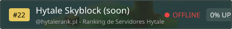 This server is coming very soon! Play Skyblock in Hytale with friends! - Create your own island - Join your friends island - Build & Upgrade - Economy shop GUI - Challenges & Quests - Cobble Ore Generators Play now at hytaleskyblock.org