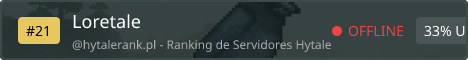 Loretale is a collaborative storytelling server through roleplay on Hytale. We aim to bring a premium experience with custom mods that allow people to play as characters. To play, you will have to apply for whitelist on our Discord.