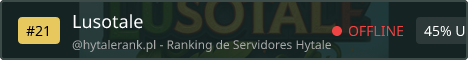 Bem-vindo ao Lusotale, um servidor Survival & Aventura criado para unir a comunidade PT/BR no universo de Hytale. Aqui, a exploração, a sobrevivência e a cooperação são a base de tudo. ⚔️🌲 No Lusotale, vais encontrar um mundo vivo e desafiante, onde cada decisão conta: constrói, explora, enfrenta criaturas, evolui o teu personagem e cria a tua própria história. Quer jogues sozinho ou com amigos, a aventura nunca acaba. ✨ O que podes esperar: 🏕️ Survival equilibrado e justo 🗺️ Exploração e aventura constantes 🛡️ Comunidade ativa e acolhedora ⚙️ Sistemas pensados para evitar grief e garantir diversão 🇵🇹🇧🇷 Servidor focado na comunidade lusófona O Lusotale nasce com um objetivo simples: criar um servidor estável, justo e divertido desde o primeiro dia de Hytale, onde todos têm espaço para jogar, evoluir e aproveitar a experiência ao máximo. 🔗 Junta-te à aventura. Constrói o teu legado. Lusotale - a tua história começa aqui. ✨
