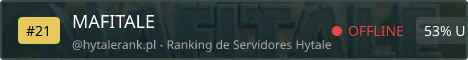 MAFITALE Survival – Experience Hytale with your friends! Always online! Jump – Earn money with jump‑and‑runs! Experience adventures! (in progress) PvP – Fight and protect yourself from players! Play now at: IP: Mafitale.com Discord: https://discord.gg/ju6knZB