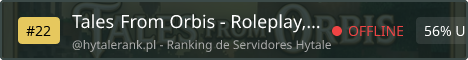 Tales from Orbis is a roleplay and worldbuilding hytale server that focuses on creating a living breathing world. Great for diplomacy, geopolitics, Roleplay and worldbuilding/Friendly community lovers as a whole Join the discord and chat with us! https://discord.gg/JY7Cnqr3Tv