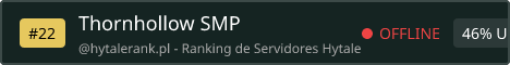 Thornhollow SMP is a long term, community focused Hytale survival multiplayer server built for players who love exploration, meaningful progression, and immersive fantasy worlds. Our server blends classic SMP values with Hytale’s evolving systems encouraging cooperation, player run economies, and organic storytelling shaped by the community itself. Whether you’re delving into dangerous lands, mastering new mechanics, building settlements, or role playing your character’s journey, Thornhollow is designed to feel alive and ever changing. We prioritize: A fair, welcoming community Survival first gameplay with room for creativity Player freedom without pay-to-win mechanics Regular updates aligned with Hytale’s development A strong sense of world identity and progression Thornhollow SMP isn’t just a server it’s a shared world where your actions matter, your builds tell stories, and every update opens new paths to explore.