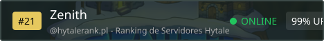 Welcome to Zenith's Hytale server! A small SMP-like server testing out the game! Land claiming, web map, instruments, homes and more! No griefing / pvp / stealing We are brand new so open to suggestions!
