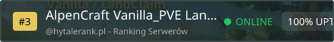 AlpenCraft – Dein deutschsprachiger Vanilla-Server ✔ Klassisches Survival ✔ LandClaim zum Schutz deiner Projekte Täglicher Restart um 04:00 Uhr /sc – Öffnet die Benutzeroberfläche für die schnelle Beanspruchung von Parteien. /sc claim - Beansprucht den Chunk, auf dem sich der Benutzer befindet (erstellt eine Gruppe, falls der Benutzer noch keine hat) /sc unclaim - Gibt den Chunk, auf dem sich der Benutzer befindet, frei, falls der Chunk seiner Partei gehört. /scp create – Erstellt eine Gruppe und öffnet die Gruppenbearbeitungs-GUI /scp – Öffnet die Benutzeroberfläche zum Bearbeiten der Gruppe. /scp invite - Lädt player_namedeine Gruppe ein /scp invite-accept – Nimmt deine letzte Party-Einladung an /scp leave – Verlässt deine aktuelle Gruppe. Wenn du der Gruppenbesitzer bist, wird die Gruppenbesitzerschaft an das erste Mitglied übertragen. Gibt es kein Mitglied, wird die Gruppe aufgelöst und alle Chunks bleiben unbeansprucht.