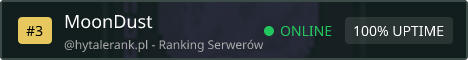 Umieść tę odznakę na swojej stronie, aby pokazać status i ranking serwera. Linkuje ona z powrotem do strony Twojego serwera.